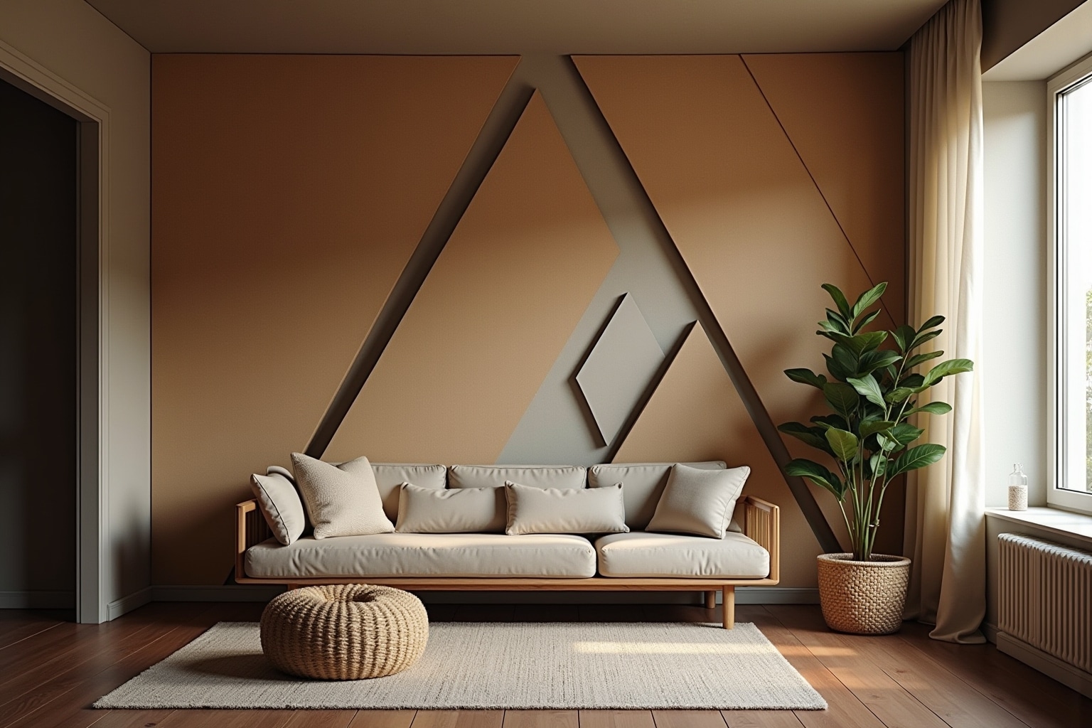 Der skandinavische Stil zeichnet sich durch seine Natürlichkeit, Schlichtheit und Gemütlichkeit aus. Verwende Holzdreiecke oder streiche die Dreiecke in warmen Farben wie Beige, Braun oder Grau. Kombiniere die Dreiecke mit natürlichen Materialien wie Wolle, Leinen oder Baumwolle, um einen gemütlichen und einladenden Look zu schaffen. Dieses Design ist besonders gut geeignet für Wohnzimmer, Schlafzimmer oder Esszimmer.