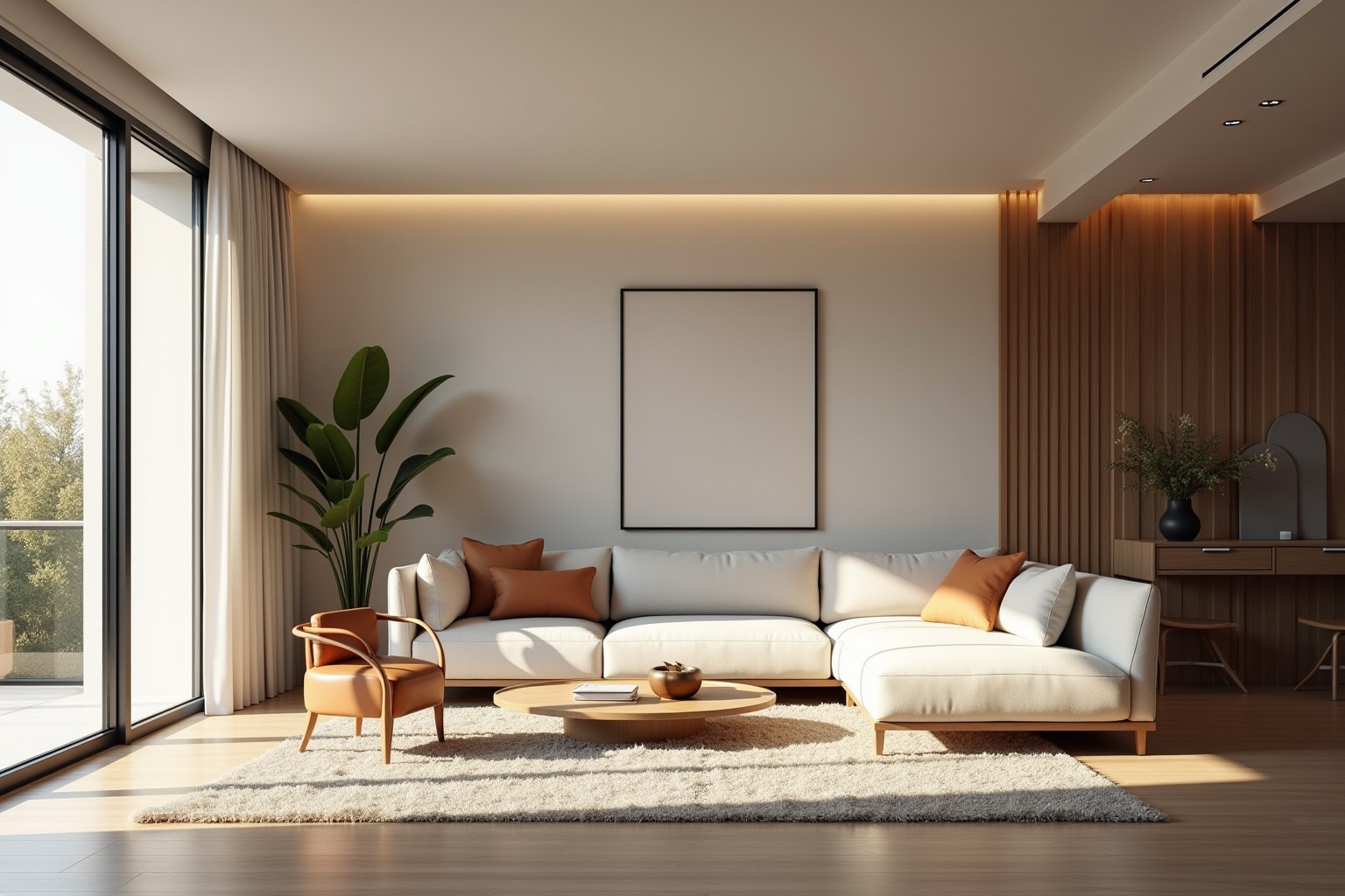 Klare Linien und Formen: Geradlinige Möbelstücke, rechteckige Teppiche und geometrische Muster sind typisch für moderne Wohnzimmer. Vermeide verspielte Details und setze stattdessen auf eine klare und strukturierte Gestaltung.