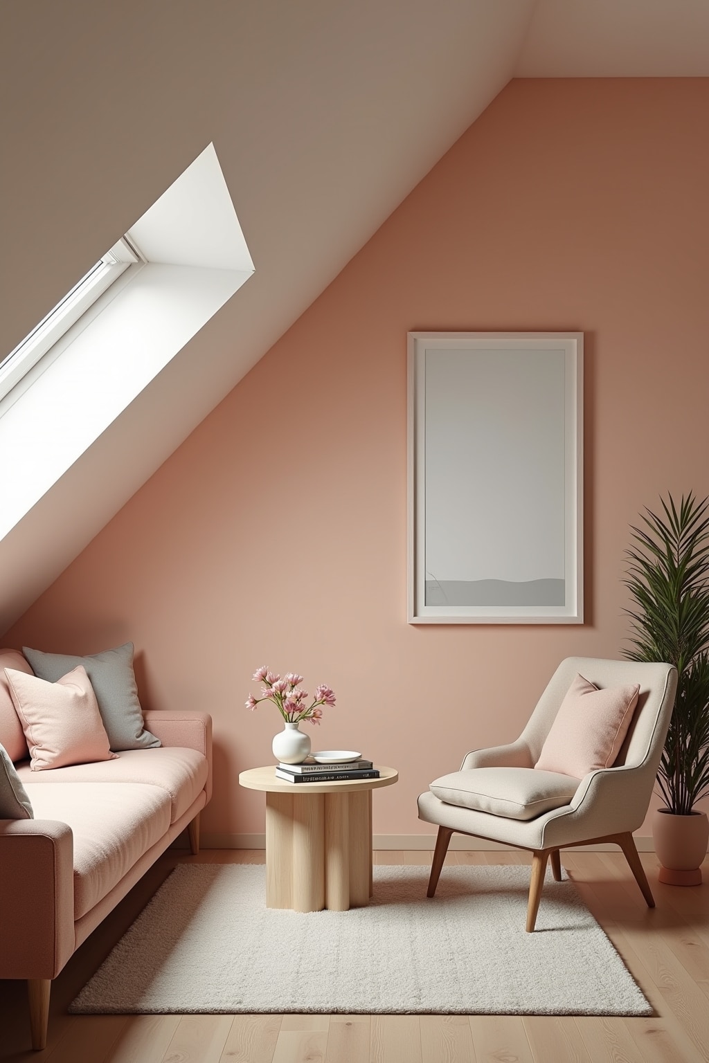 Helle Farben und strategisch platzierte Spiegel lassen Dachgeschosswohnungen größer und luftiger wirken und maximieren das natürliche Licht.